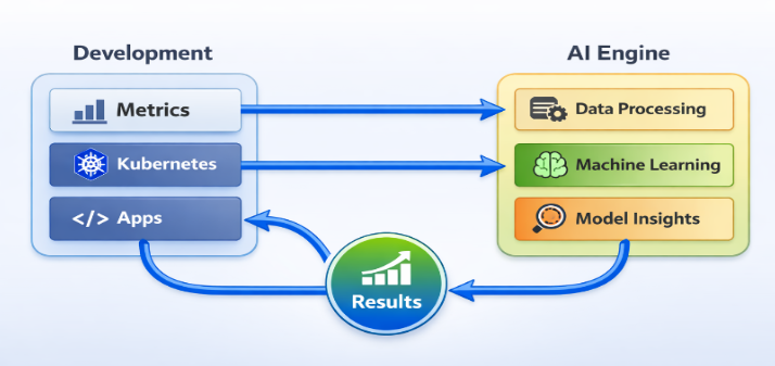 Metrics improve: Deployment frequency rises as guardrails prevent cost-related rollbacks, and reliability grows via predictive alerts.