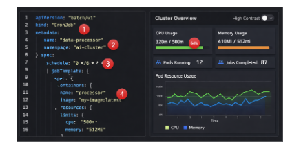 - Anomaly Detection: Models like isolation forests flag unusual spikes, such as a namespace consuming 200% expected CPU, triggering auto-scaling down.
