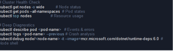 | Network Timeouts | Misconfigured NSG/Calico policy | kubectl run -it –rm test
