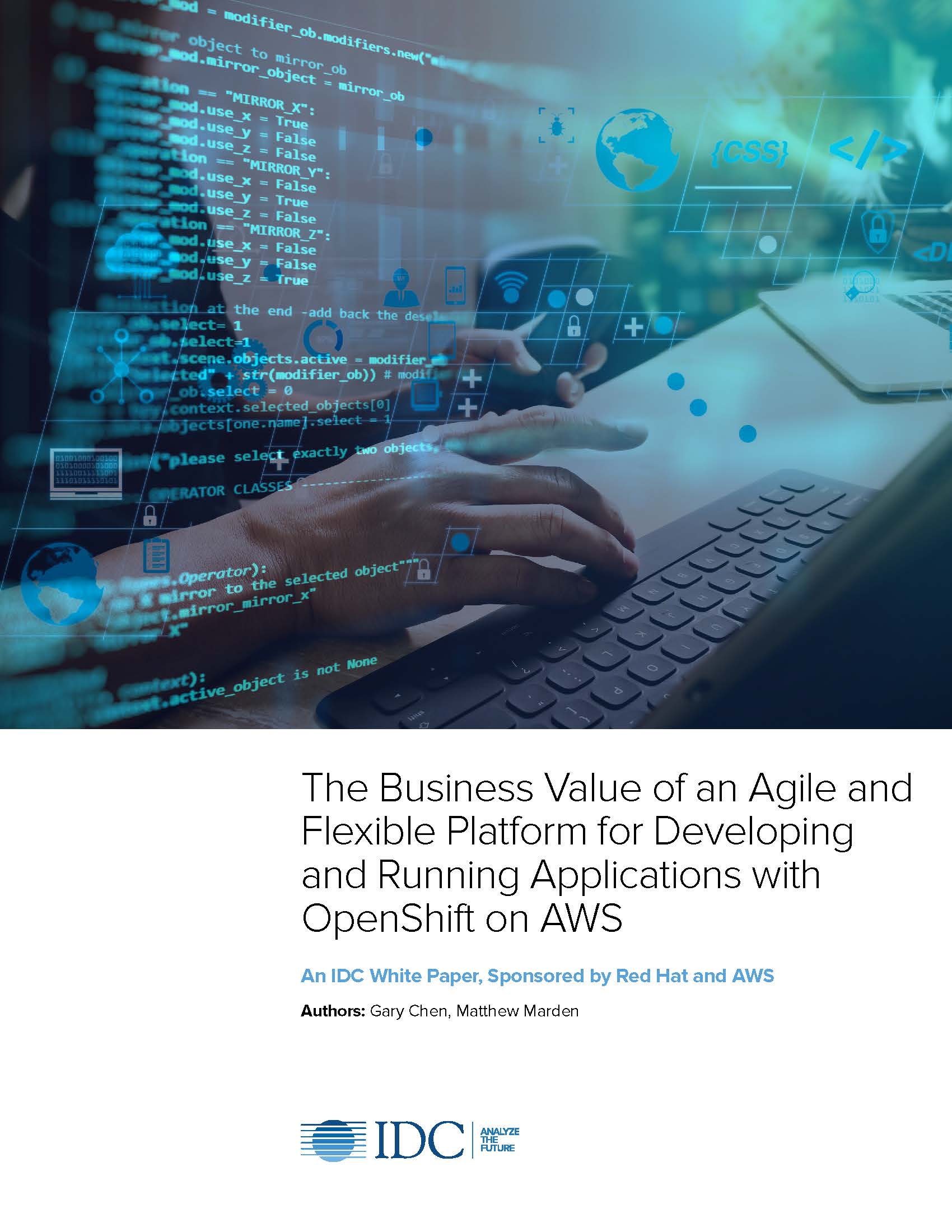 IDC spoke with organizations that are leveraging containerization and the public cloud by using Red Hat OpenShift on Amazon Web Services (AWS) to develop and run business applications. These organizations reported benefiting from combining a powerful and flexible platform for developing and running business applications (Red Hat OpenShift) with the agility, elasticity, and efficiency of the AWS cloud. With OpenShift on AWS, their development teams can better serve their businesses and they establish a more cost-effective and reliable IT platform for these applications. As a result, these organizations are capturing strong value through their investment in OpenShift on AWS, which IDC projects will have a value of $10.89 million per organization per year.