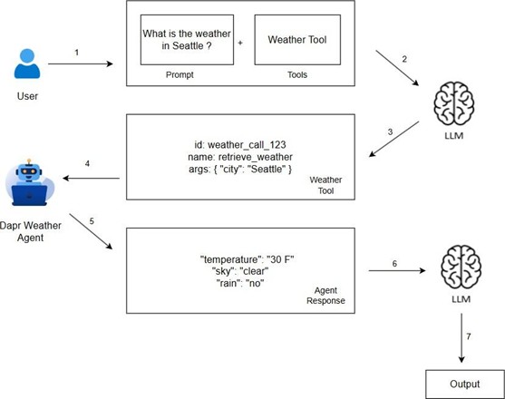 Run the python weather_agent.py command to see how Dapr intelligently orchestrates calls between the agent and model provider.