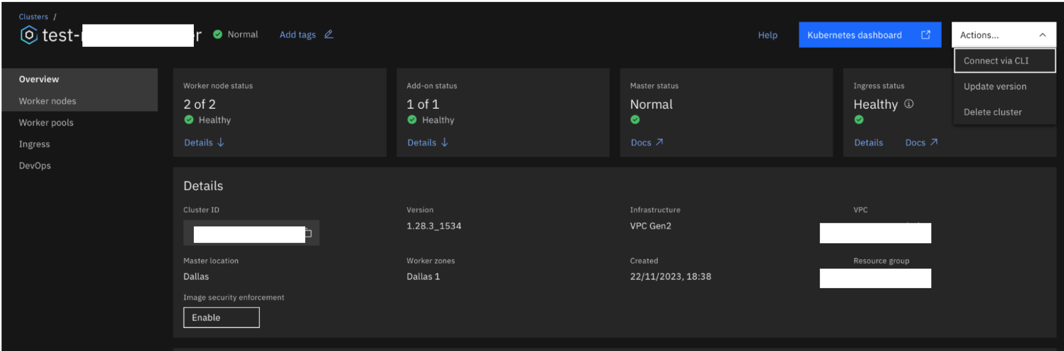 Next, access the “Actions” menu located in the top right corner of the cluster details page by clicking on it.